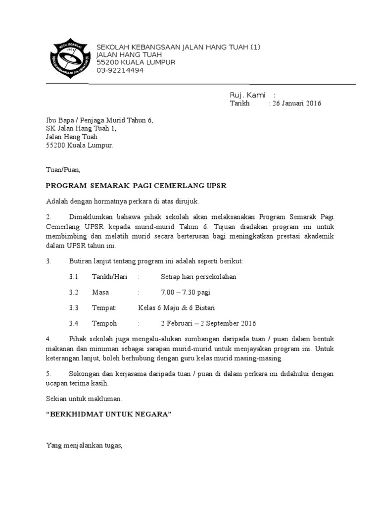 Contoh Surat Makluman Ibu Bapa Utk Program Pdf